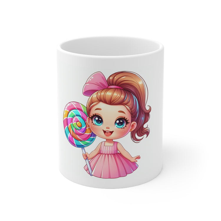 Cute Cartoon Girl with Lollipop Mug - 11oz White Ceramic Coffee Cup