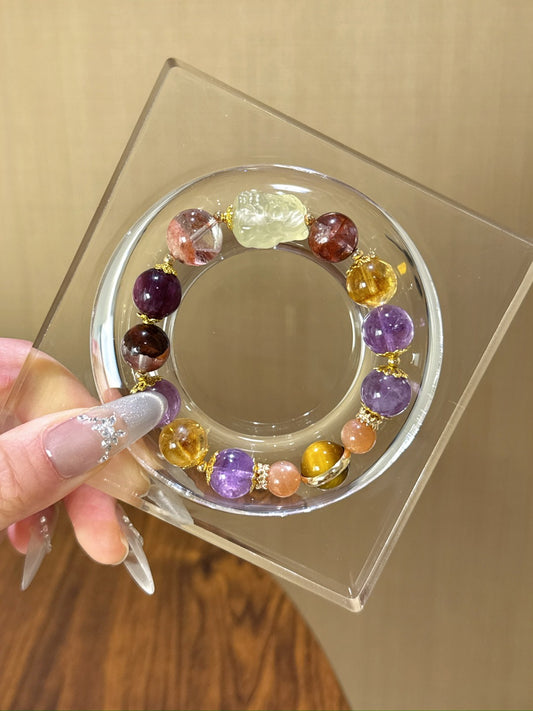 Red Hematoid, Citrine, Purple Lepidolite with Citrine Fox Bracelet - 12mm