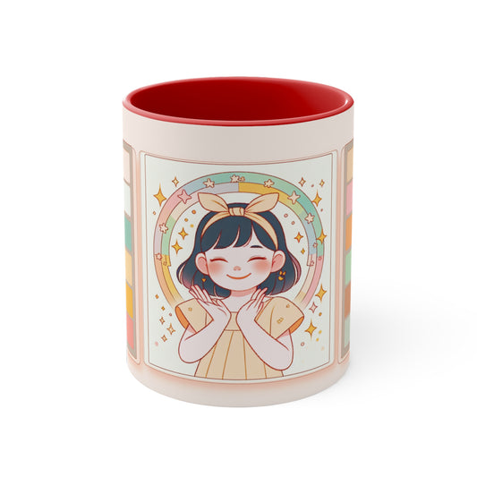 Cute Girl Illustration for Cozy Mornings | 11oz White Ceramic Coffee Cup in 4 Colors